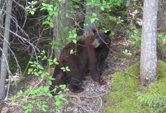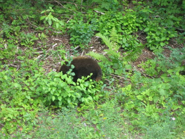 And living further back toward West Glacier, near Apgar Village and the Apgar Transit Center, this little cinnamon-colored black bear below has been seen on a frequently recurring basis this summer.