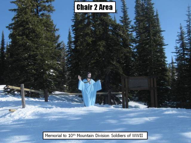 If you choose to ski Hellroaring or Ed’s, you can go pay your respects to the 10th Mountain Division Warriors of World War II. Some of these men were members of the Knights of Columbus. After the war, the organization gave the mountain a statue of Jesus to commemorate their service. The statue is near the top of the original Big Mountain ski area (now the top of Hellroaring and Ed’s runs). It is an iconic Big Mountain sight….and one under attack. A Wisconsin-based group has recently lobbied the Forest Service to have it removed. And while the courts work, they’ll apparently just attack it, one appendage at a time.
