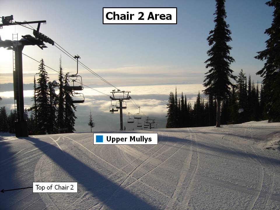 Chair 2 (a high-speed quad), services 1110 vertical feet of terrain and opens at 9:00am, 30 minutes prior to Chair 1 opening; all early skiers start their day here, getting 2-3 warm-up runs before being allowed to go to the summit. And if you play your cards right, you just might get an inversion day to yourself.