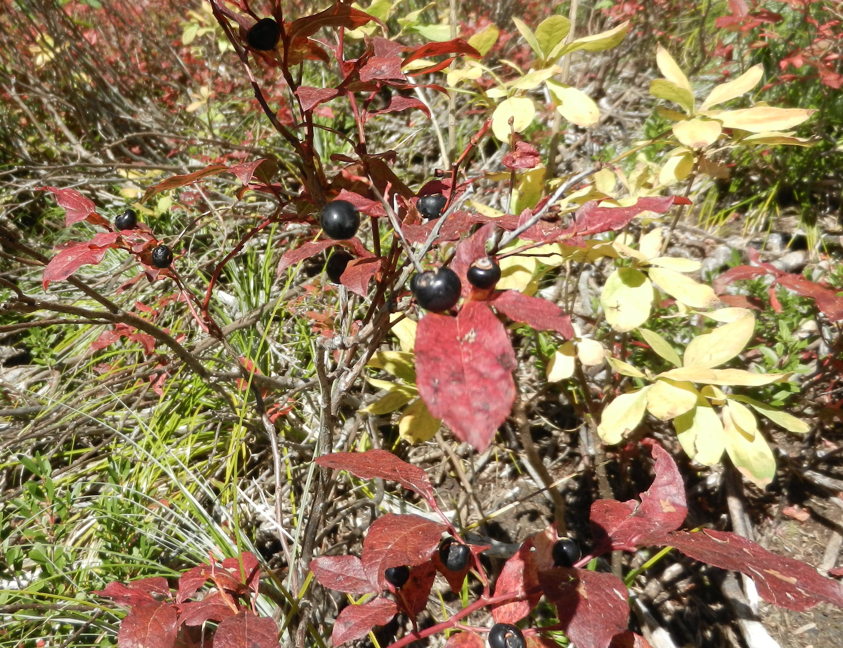 After the Murphy visit, Mike and I have picked a hair under two gallons–which came out to nine and 1/2 pounds total. I got up to the mountain every day for a solid work-week–learning the ropes for myself. I had to pick in difficult to access, away from trails, kinds of locations, to get to the unpicked plants. Even picked over plants, had immature or well-hidden berries, that were missed or ignored during previous pickings. As the season wore on, you went from picking from green-leafed plants to orange to even completely red. The hucks were great in all cases.